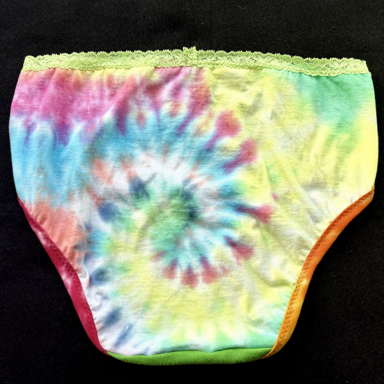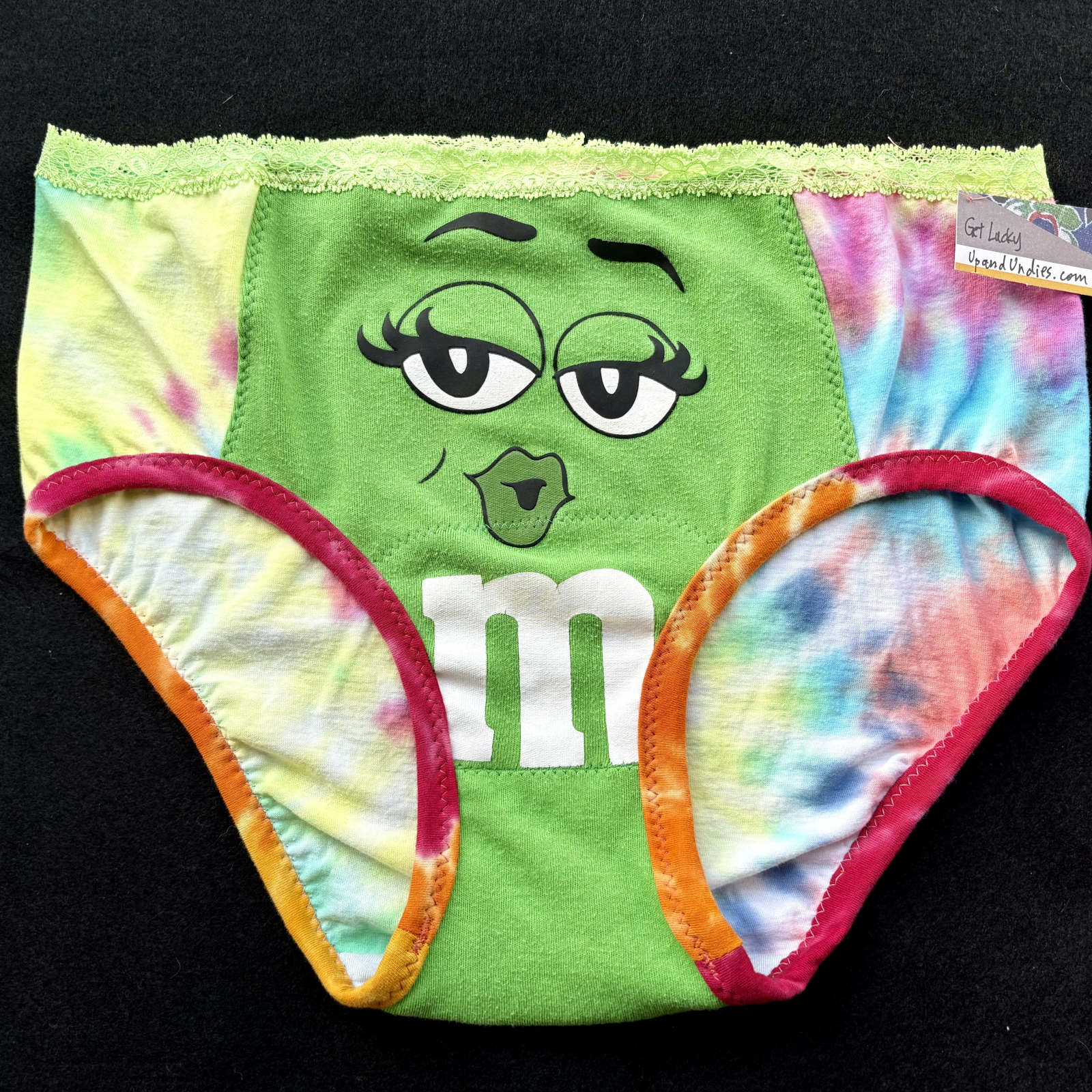 Green M&M on the front, what's not to love? Tie dye tush and legbands. Neon green lace waistband.